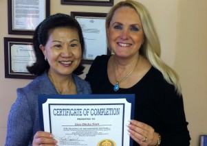 Lisa Nam receiving her Certificate from Katie Shepherd, Founder and CEO of The Shepherd Institute for Lice Solutions